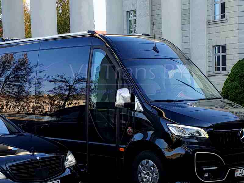 - Mercedes Sprinter VIP W907 20мест 2024 г.в. в аренду с водителем в Минске. Компания VIPTrans предлагает в аренду с водителем в Минске и Беларуси комфортабельный чёрный автобус на 20 мест представительского класса НОВЫЙ Мерседес Спринтер W907. Прокат Mercedes Sprinter VIP W907 для деловых поездок, VIP трансфера из аэропорта Минск. Самый комфортабельный автобус туристического класса на 20 мест в Минске. Максимальная комплектация для самого комфортного и безопасного путешествия турристических групп от 1 до 20 человек. Аренда Спринтера в Минске с водителем для делегаций, развлекательных мероприятий, свадеб. Трансфер в аэропорты Москвы — Минск-Домодедово, Минск-Шереметьево, ВИП трансфер в Санкт-Петербург Минск-Пулково. Туристические маршруты по Беларуси Минск — Мирский Замок, Минск — Несвижский Замок, Минск — Полоцк. Трансфер до границы РБ и РФ, до границы РБ и ЕС.
