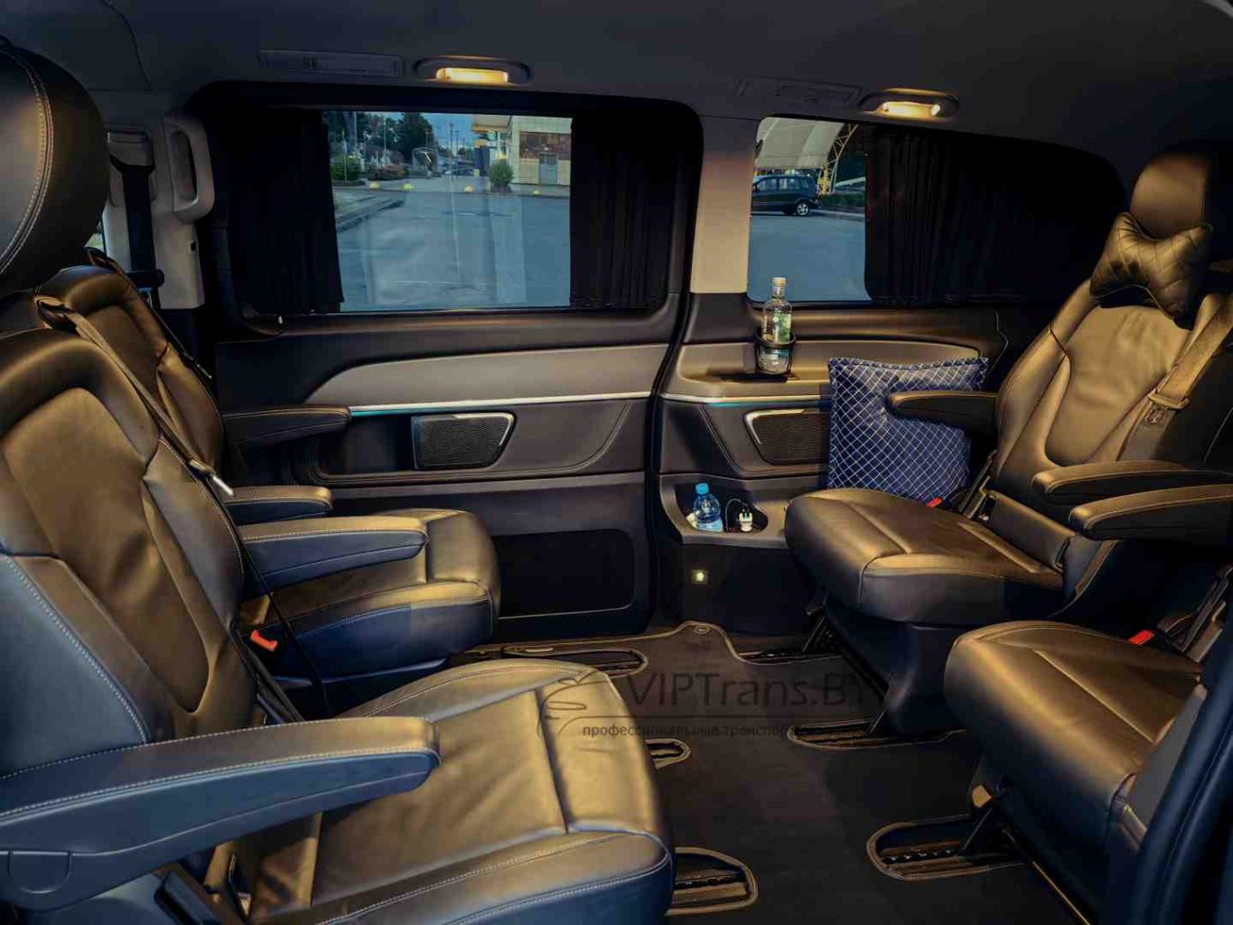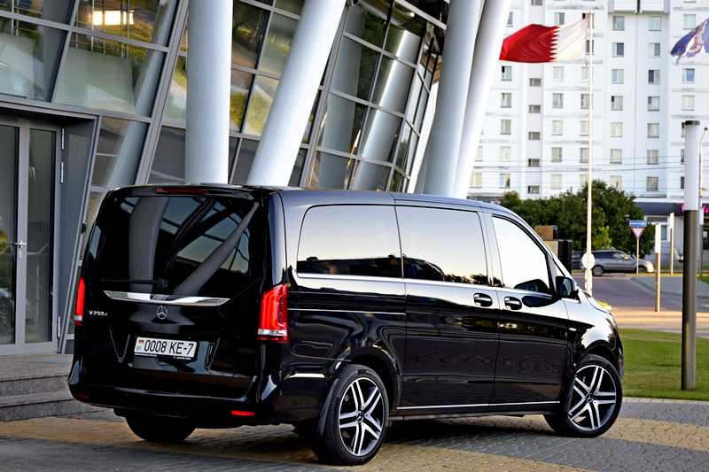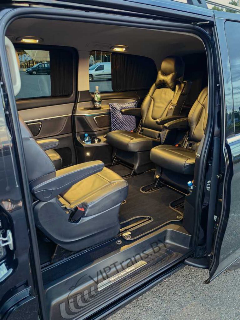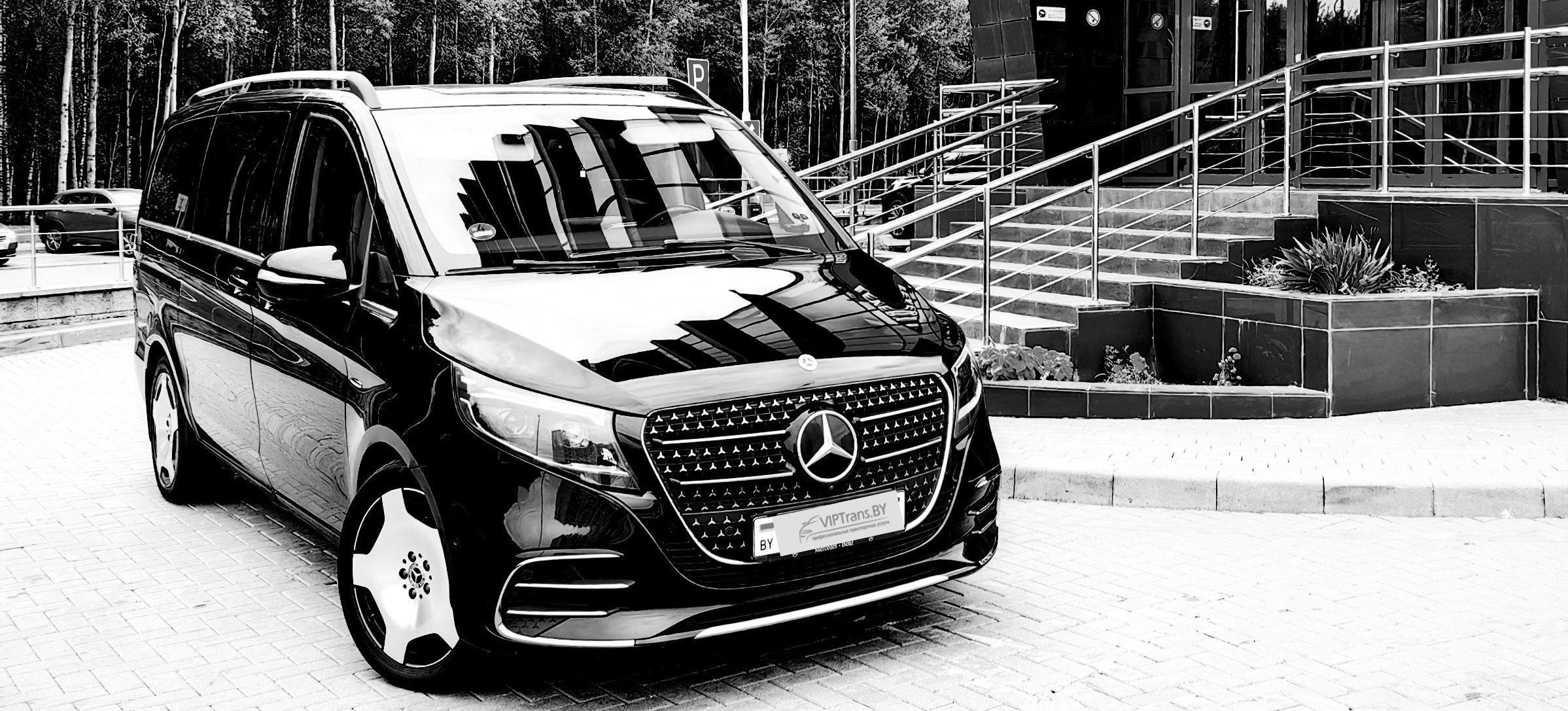ВИП минивэн Мерседес V-class W447 с водителем в Минске и Беларуси. Компания VIPTrans предлагает в аренду комфортабельный чёрный ВИП минивэн представительского класса Мерседес V-class 4Matic AVANTGARDE для быстрого, безопасного и комфортного трансфера из Минска в аэропорты Вильнюса, Риги, Варшавы, Праги, Москвы. Прокат ВИП авто Mercedes V-class VIP с водителем для деловых поездок, ВИП трансфера в аэропорт Домодедово (Москва) и обратно. Также наша специализация — индивидуальный ВИП трансфер Минск — Москва, Минск — Санкт-Петербург, для наиболее быстрого и комфортного передвижения используем платные участки автодорог без доплат.